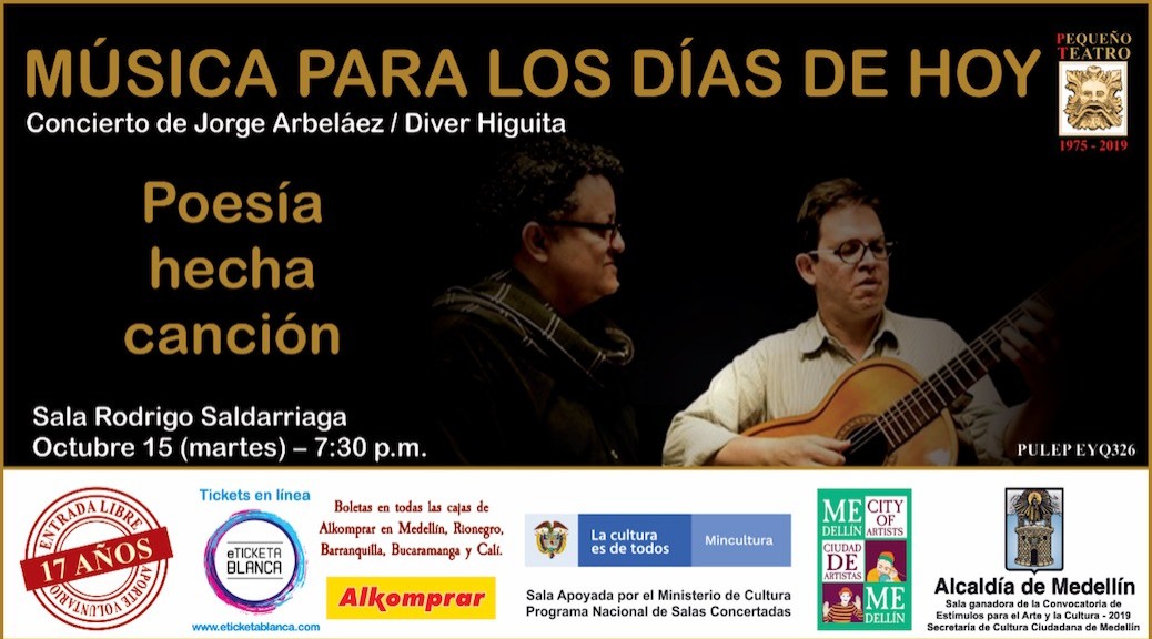 La tercera sección de canciones con la que concluye el recital, corresponde al ciclo concebido por Arbeláez para guitarra y tenor, denominado “Canciones para los días de hoy”: Cuatro poemas que el compositor musicalizó en los cuatro ritmos más representativos de la zona andina colombiana: Pasillo, Bambuco, Guabina y Danza.